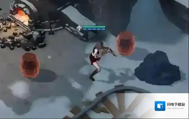 4、第三回合,移动到下图所示位置,打掉第二个炸药桶,炸死2个壮汉