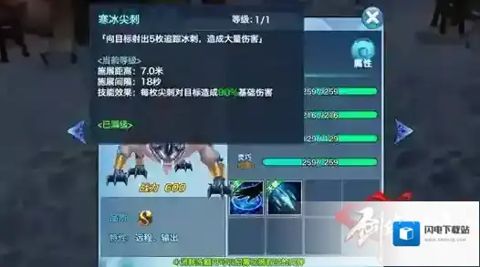 天赋技能:寒冰尖刺。向目标射出5枚追踪冰刺,造成大量伤害。