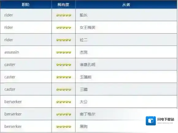 上半区:呆毛、小莫、大王、祖师爷、阿周那、月神、小太阳、白枪呆、贞德9选1