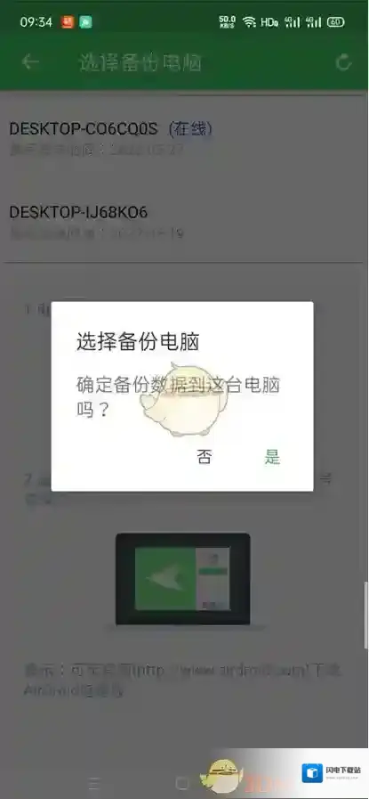 2、在以下屏幕上,再次单击“备份”按钮,然后选择要备份文件的电脑。确保两个设备都连接到同一网络。