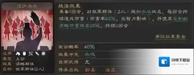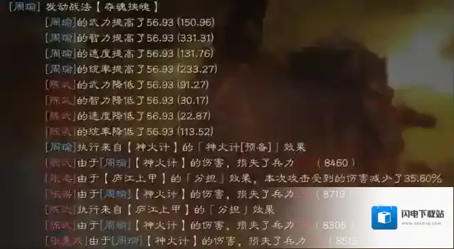 周瑜的自带战法神火计需要主动战法发动来触发伤害,夺魂挟魄不仅有着高额的发动几率可以更加频繁的触发自带战法,还能为周瑜自身带来大幅的属性加成。