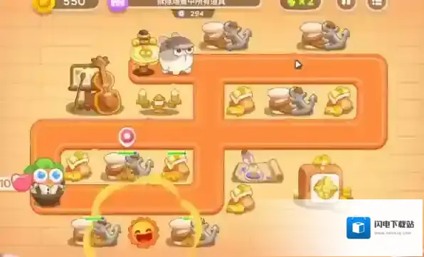 3、开局左边钱箱附近放置一个盲盒,选择输出高的炮塔,开出不合适卖掉,炮塔集中摆放,因为这一关卡会有吊索兔。