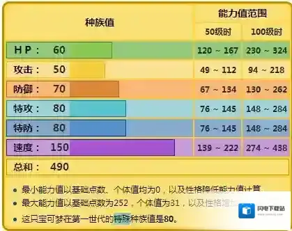 顽皮雷弹应该是初代加二代的速度担当了,150的速度放在全PM范围也难有几个PM能够达到,虽然因为M胡地和M化肥的存在(尤其是前者)这个速度线变得越来越重要,虽然被某只蟑螂给压了一头。不过作为一只总种族并不算太高的普通精灵,顽皮雷弹的其他种族就显得有些平庸了,80的特攻让它即便带上眼镜也不能提供太高的输出,更别说顽皮雷弹的攻击技能学习面特别狭窄了,虽然速度在低分级中傲视群雄(不能接剑舞的铁面忍者?),但实用程度显然不如雷伊布。