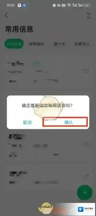 3、接着来到常用信息的页面中,我们选择需要删除乘客信息长按;