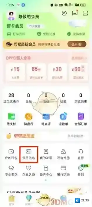 2、然后在我的页面中我们需要找到常用信息功能点击;