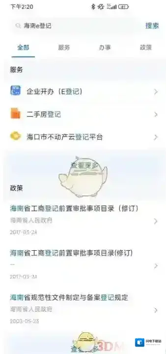 2、进入“海易办”后搜索“海南E登记”,选择企业开办“E登记”