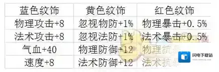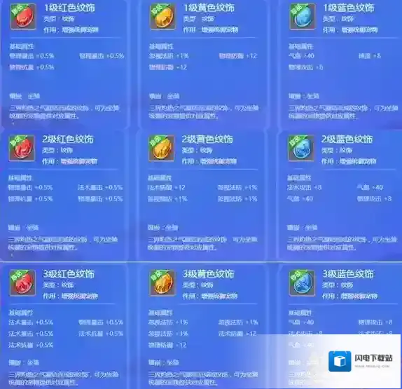 纹饰级别越高属性个数越多,属性的类型在下表中选取,可以重复。