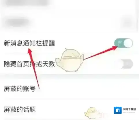 3、在设置菜单,把“新消息通知栏提醒”功能按钮关闭即可。