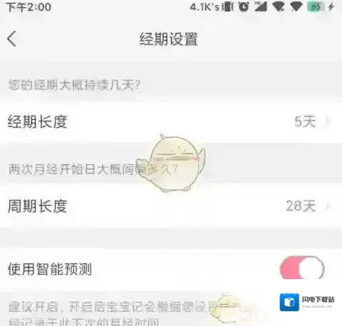 3、在经期设置页面中,选择是否开启使用智能预测。