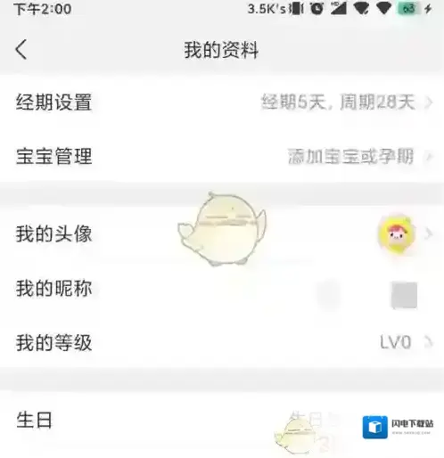2、在我的资料页面中找到经期设置选项,点击后进入经期设置界面。