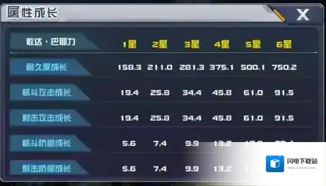 机体6星时,伤害提升50%,降低的武器损坏抗性增加20%,武器损坏时间增加2秒,开场后,敌方被武器损坏的概率提升到100%。当我方上阵5台格斗型机体时,敢达·巴耶力进入阿赖耶识系统后解除自身和我方攻击最高的机体无法回复能量效果并回复250点能量,之后每15秒生效一次。
