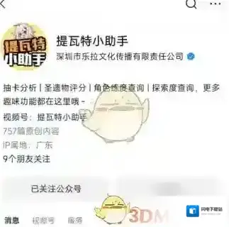 1、关注“提瓦特小助手”公众号
