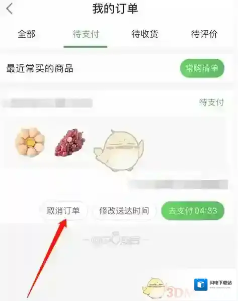 4、进入“我的订单”页面之后,点击订单下方的“取消订单”选项。