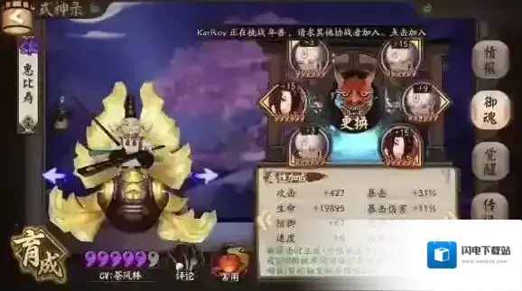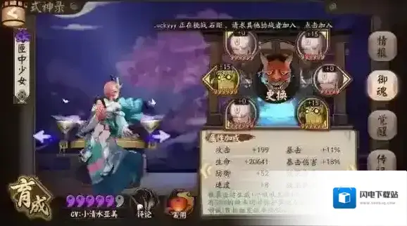2.匣子女全程普通攻击(你没看错,从第一回合到打完),我们只要吃她的攻速防buff。(所以她御魂最没要求,在保持地藏套前提下,血越多血好)