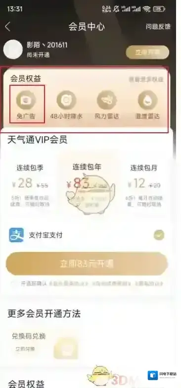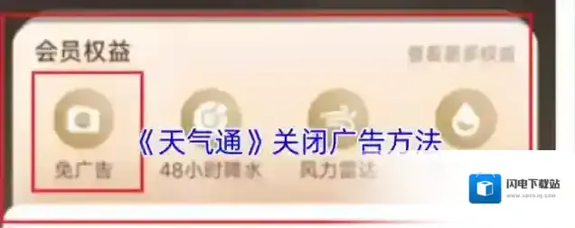 《天气通》关闭广告方法 2025-08-22 22:39:29 编辑:柠檬不萌i 分类:应用教程 • 阅读:136 1、打开“天气通”App,点击右下角“我的”。 2、点击“立即开通”。 3、然后进入会员中心,发现免广告权益需要开通会员,再点击下面对应的立即开通即可免广告。 本文内容来源于互联网,如有侵权请联系删除。 天气通应用相关内容 全部 天气通点击 天气通开通 天气通 天气通免广告 天气通关闭广告 《天气通》录制语音播报天气方法介绍 天气通录音 录制方法介绍: 1.我们首先在手机上打开天气通这款应用,然后在打开首页点击右上角的下拉按钮,如下图所示。 天气通如下图所示 2.在打开的列表中点击选择个性语音选项,如下图所示。 天气通点击 3.然后在打开的页面,点击我的语音按钮,如下图所... 2025-06-30 发表回复 请登录后评论... 登录后才能评论 评论列表 (0条)