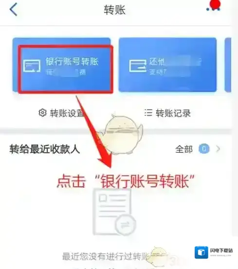 3、成功登陆账号并进入转账页面后,点击银行账户转账选项。