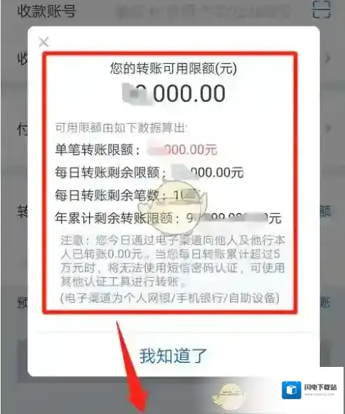 5、在弹出的窗口中就可以看到自己的转账限额了。