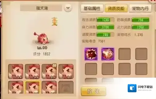 接下来上一直任务红宠个性野猪宝宝,高级必杀、高级偷袭、高级野战、高级连击,攻宠4大技能全部拥有,而且还有1.2的高级智商成长,1386的攻资,瞬间变成了野猪中的高富帅啊!愿意给4本红书的主人让多少野猪们羡慕不已。