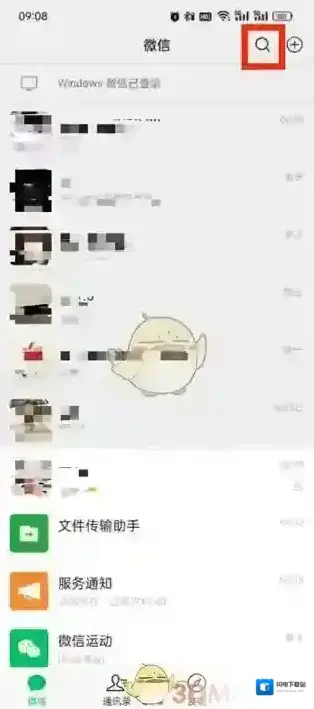 1、首先打开微信软件,进入到首页中后我们可以看到正在聊天的好友,在这里点击右上方的搜索图标;