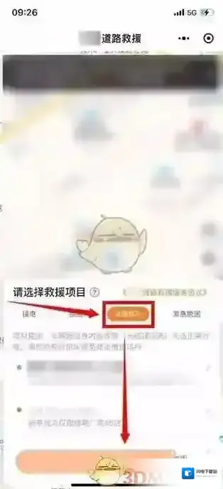 4、之后进入到公众号的页面中选择故障拖车之后点击下一步;