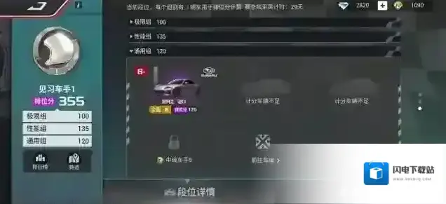 排位模式中,车辆根据性能的区别被分为了极限、性能、通用三个组别。毕竟你不能用mini去和兰博基尼比速度吧,要是真跑过了就变成魔幻游戏了,也算是合理的。