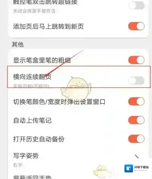 3、最后,进入更多设置页面,点击横向连续翻页选项,完成具体设置即可。
