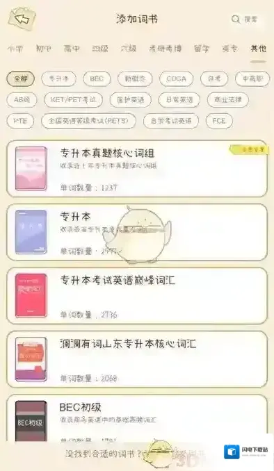 3、之后进入词书选择界面,在这里可以查看各种类型的词书,选择想要添加的词书;