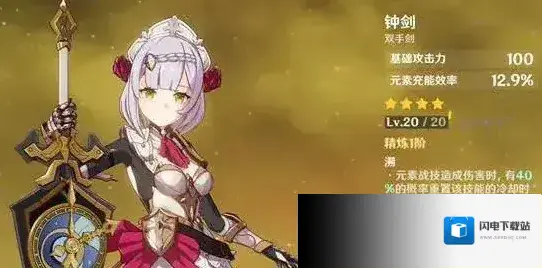 4星武器最适合诺艾尔的当属钟剑了,可以通过祈愿锻造获得,只要跟怪物贴脸丢护心铠,就有几率重置它的冷却时间,武器突破后能增加几率跟冷却时间,通过这把武器,可以大幅度增加诺艾尔的辅助续航能力!