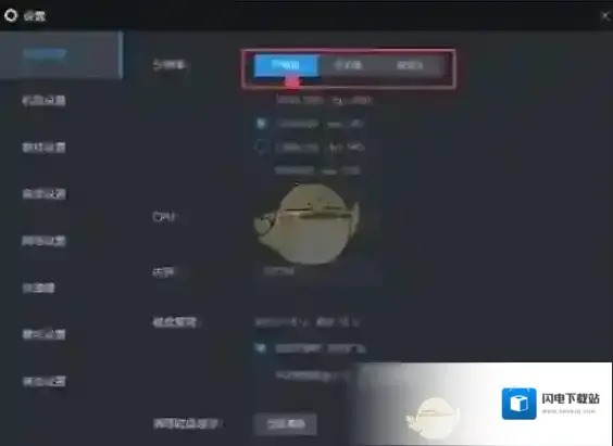 2、在设置界面中,找到并点击“性能设置”选项,在性能设置界面中,找到“分辨率”选项,点击下拉菜单,选择“平板版”分辨率即可。