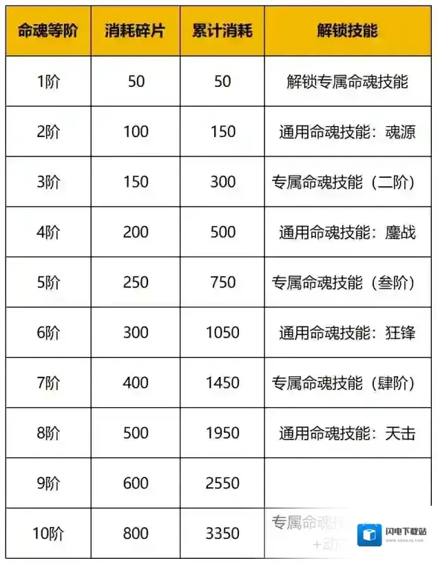 每个武将共有10阶命魂等级,升级后可解锁4个通用命魂技能和一个专属命魂技能,10阶后还可解锁对应武将的动态头像。