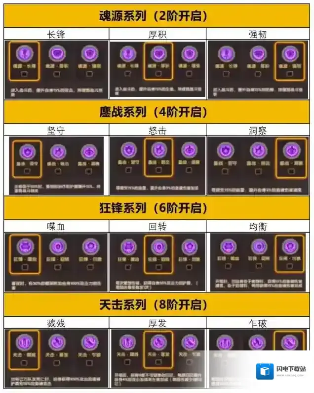 (2)通用技能:命魂 2、4、6、8 级解锁通用可选技能,每级都可以从 3 个技能中选择 1 个来获得。