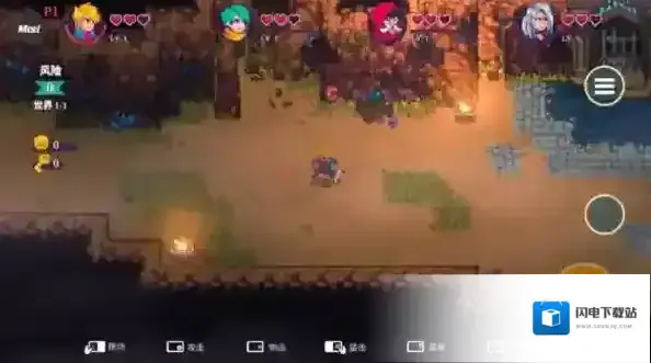 2、玩家可以随时切换所使用的角色,当某人HP不足时可以换人上来,获得加血道具也可以分给最需要的勇士,即使牺牲也没关系,可以找到复活道具重生