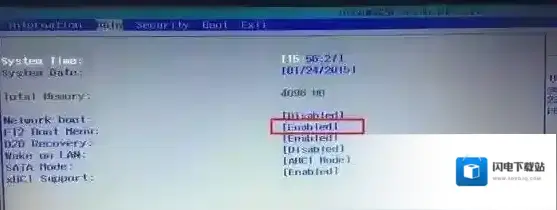 3、转到Main,选择F12 Boot Menu回车,设置为Enabled,按F10选择Yes回车保存修改,如图: