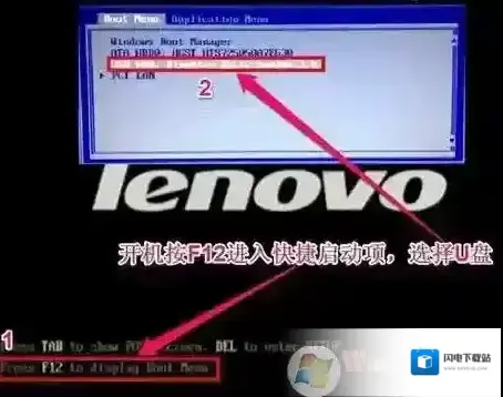 5、保存设置后自动重启进入LOGO画面时,一直按F12,选择U盘启动,如图所示: