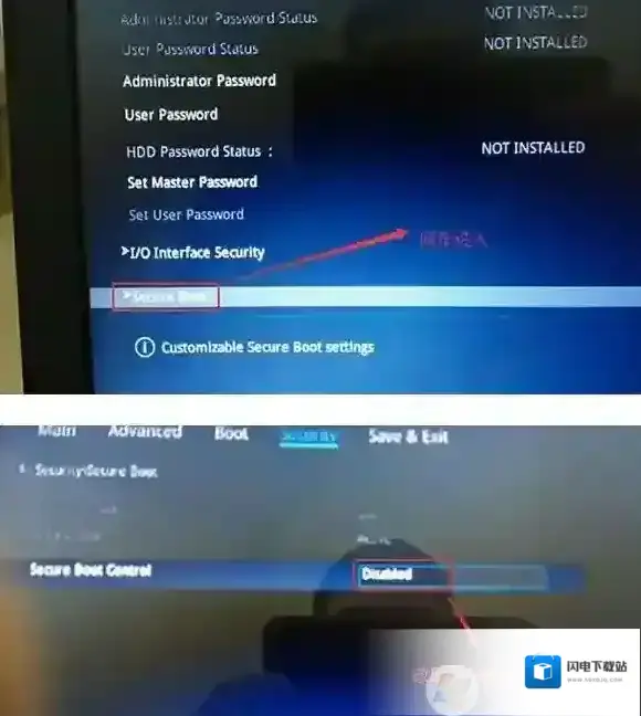 华硕kx53ve装win7图文教程步骤二:BIOS修改与U盘启动1、重启笔记本按esc进入BIOS设置,然后按F7进入高级模式,按→方向键移动到Security,选择Secure Boot,然后回车进入把Secure Boot control选enabled改为disabled关闭安全启动,然后按F10保存重启;