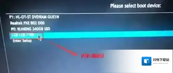 4、插入U盘启动盘,重启按ESC选择识别到U盘启动项,回车;