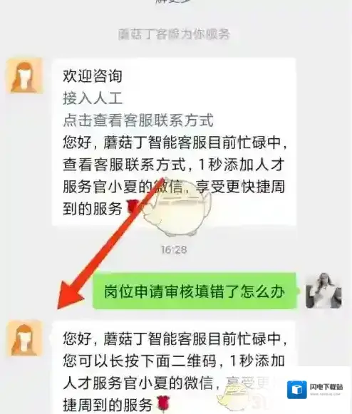 3、点击智能客服,如下图,发送岗位申请审核填错了怎么办,看到客服的回复就知道怎么做了