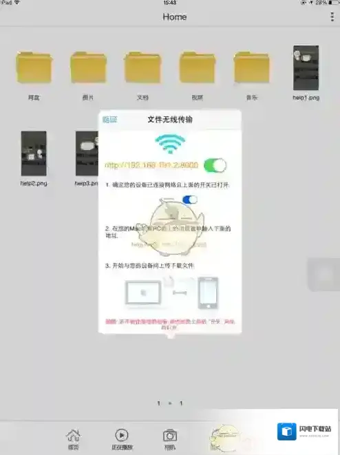 5、按照此步骤,在电脑上的浏览器中输入显示的IP地址并按回车键Enter–进入第二张图片所显示的页面,此页面与ipad上的文件夹类型一样。