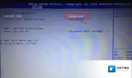 3、转到Boot选项卡,把Launch CSM改成Enabled,开启兼容模式,如图所示: