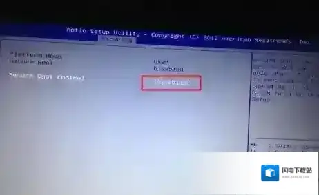 2、选择Secure Boot Control,按回车键把Enabled改成Disabled,关闭安全启动,如图: