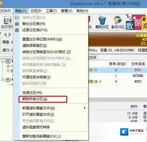 神舟笔记本Win10改Win7 分区转换及装Win7系统:(如果原来是Win8 Win10系统,那么是需要进行分区的GPT要转换为MBR,如果原来就是Win7,且不想分区可跳过该步骤)1、打开上图的Diskgenius分区工具;打开Diskgenius后,选择笔记本硬盘,然后点击“硬盘”–“删除所有分区“,删除前确保资料已经转移,删除后,点击保存更改;如果无需分区的跳过这个步骤,要分区先要备份重要资料,分区后丢失。