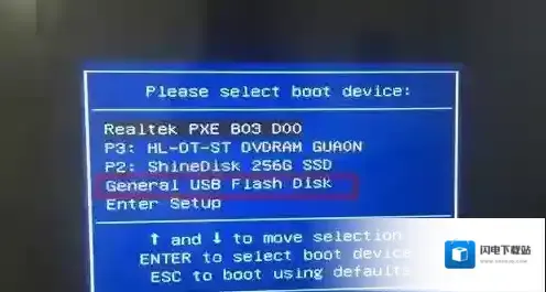 4、保存设置后自动重启进入LOGO画面时,一直按重启按F12/F7/ESC快捷键,在启动菜单中选择USB启动,如下图所示;