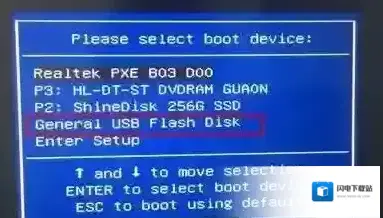 4、保存设置后自动重启进入LOGO画面时,一直按重启按F12/F7/ESC快捷键,在启动菜单中选择USB启动,如下图所示;
