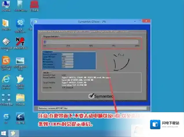 2、然后就是等待GHOST完成,100%之后,电脑会重新启动,进入下一步的系统部署操作。