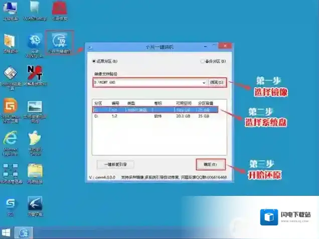 4、运行桌面的”一键装机”等工具,然后选择win7系统镜像文件,以c盘为系统盘,把win7系统安装在c盘中,点击确定,如图所示: