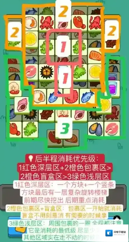 洗牌的用法:格子里如果只剩下三四个空格可用,但是牌面已经没有可消除的了,就可以用洗牌,注意,如果只剩下一两个空格可用,那就没有必要用洗牌,所以洗牌之前要保留三四个空格,格子里的牌能有重复的最好。