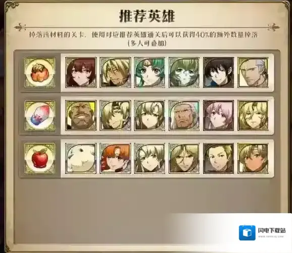 使用推荐英雄通关后可以获得40%的额外数量掉落的活动道具(多人可叠加)