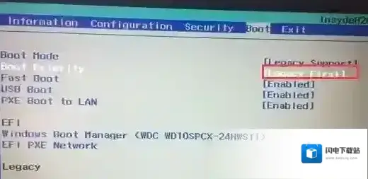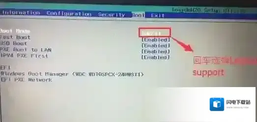 4、切换到Boot,把Boot Mode从UEFI改成Legacy Support;