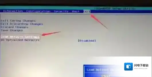 3、选择Load Default Settings回车加载设置,加载默认设置之后,部分机型需要先按F10保存重启再按F2进入BIOS继续下面的设置;