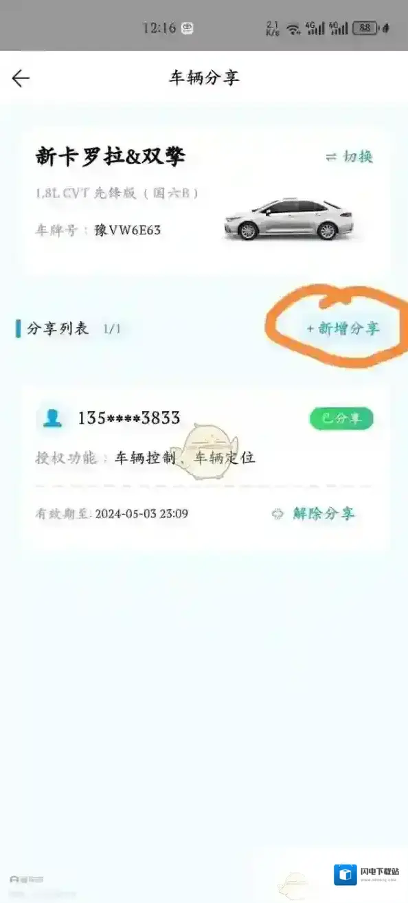 3、然后,在相应位置输入想要绑定的家人的手机号码。如果该手机号码尚未注册一汽丰田账号,则需先进行注册。注册完成后,输入收到的验证码并点击分享。最后,在家人的手机app上点击确认,即可完成绑定。